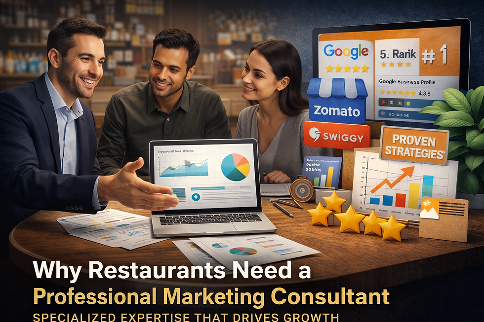 Many restaurant owners attempt digital marketing on their own but struggle with inconsistent results. A specialized restaurant marketing consultant provides: